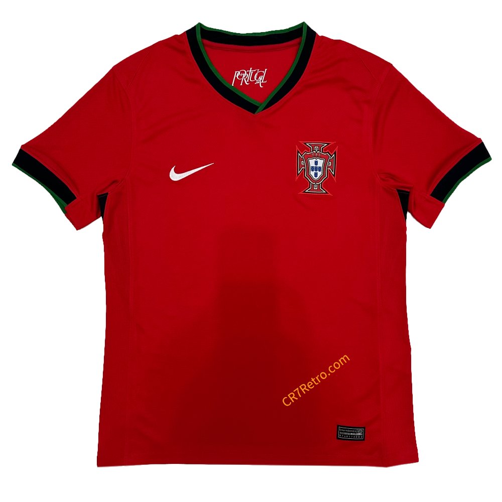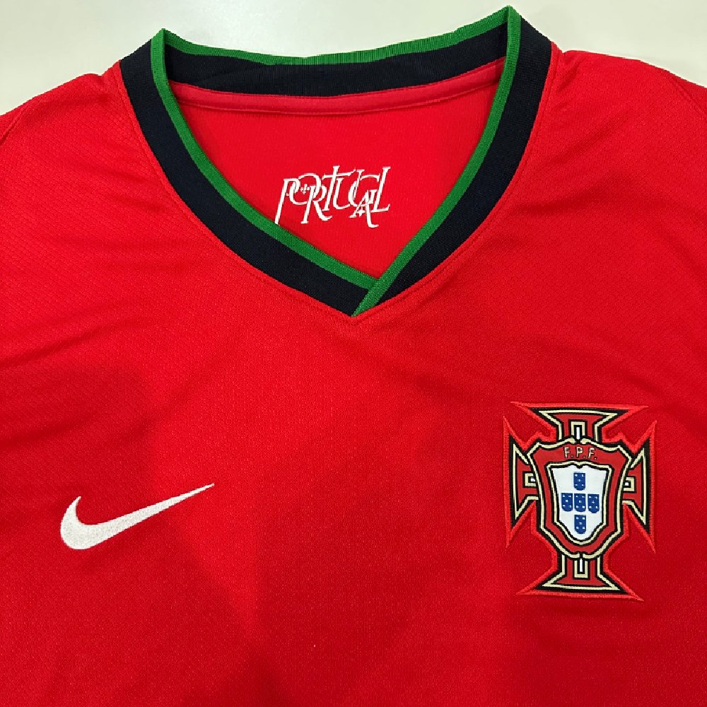 The 2024 Portugal Home Jersey by Nike showcases the nation’s traditional red design with green and black trim, representing pride and unity. Its classic style combines modern performance materials with Portugal’s timeless football heritage. Lightweight, breathable, and crafted for comfort, it reflects the passion and strength of Portuguese football.