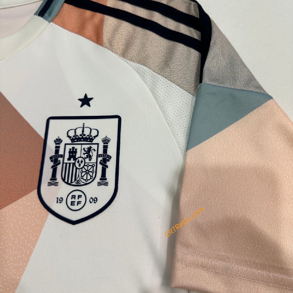Inspire the next generation of fans with the Spain Women’s Away Jersey Kit 2025 Euro Cup, designed by Adidas. This bold and artistic kit features a modern pastel geometric pattern that reflects creativity and confidence, celebrating Spain’s rising dominance in women’s football.